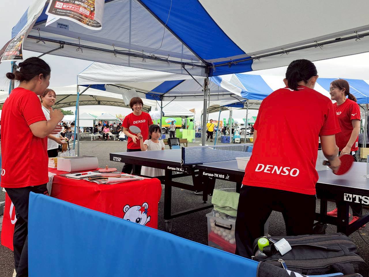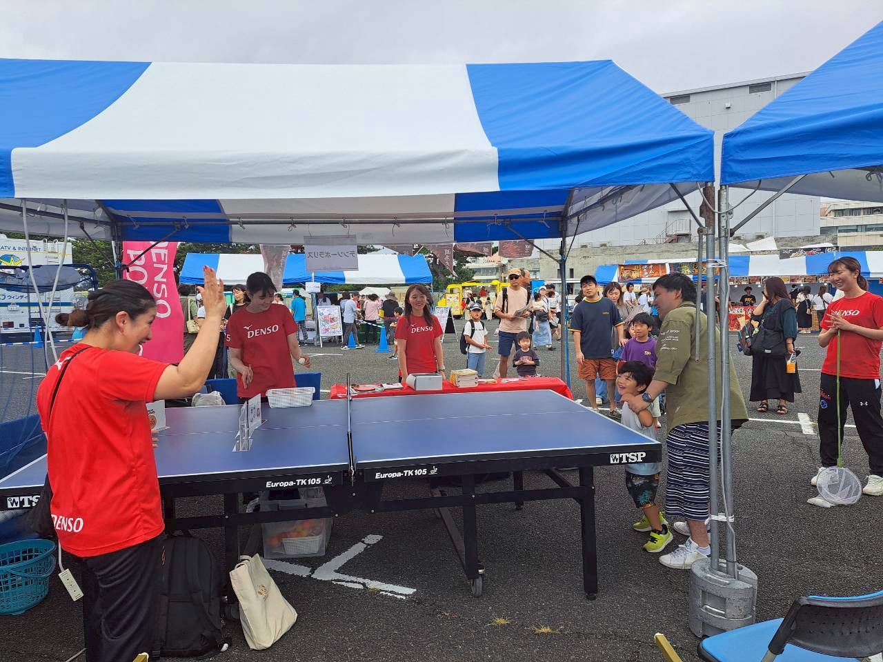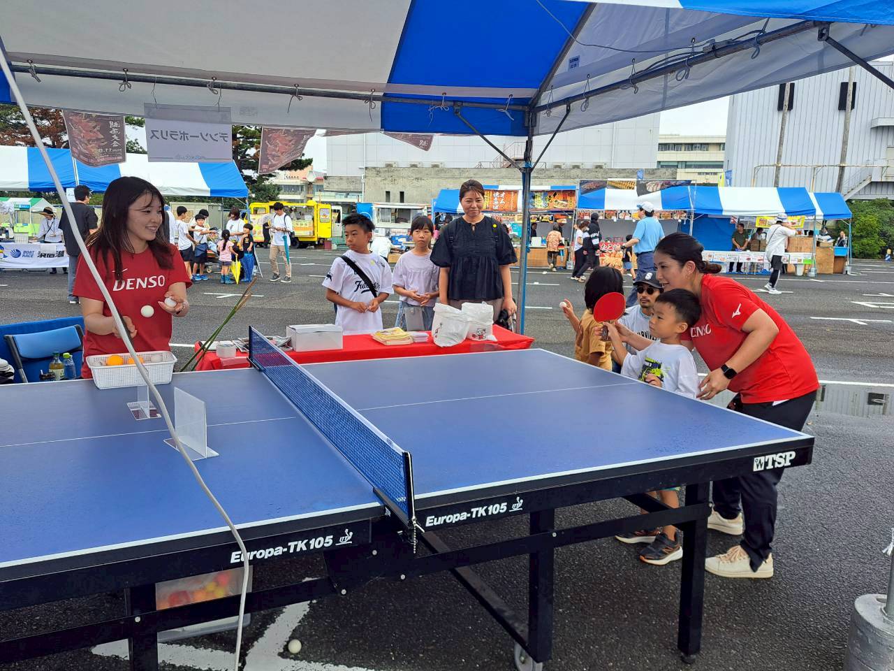 当日は、デンソーポラリスを知っていただくために「卓球的あてチャレンジ」を実施。悪天候にもかかわらず、地域のみなさま約440人にご参加いただき、卓球を楽しんでいただきました。