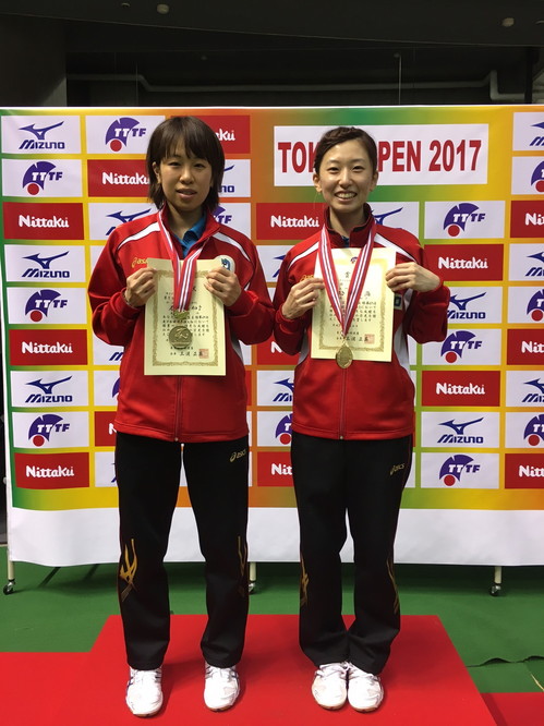 3月1日~5日に東京体育館で東京卓球選手権大会が行われました。この大会は、国内でもトップレベルのオープン大会で、アスモからは静岡県の代表として6名の選手が出場しました。全日本選手権で優勝した平田有貴・永尾尭子組は4回戦で敗退しましたが、石塚美和子・松村夏海組が大健闘!何度も相手に先行される試合を、逆転で決勝まで勝ち進み、決勝では今大会第1シードで昨年の優勝ペアと対戦。決勝でも0-2で相手を追いかける試合展開でしたが3-2で逆転勝利し、見事初優勝を遂げました。また、石塚美和子、松村夏海の2名は今年度で現役引退を表明しており、最後の公式戦での優勝と、まさしく『有終の美』を飾りました。彼女達の今後の人生にも、華々しい門出となりました。4月からは新体制となり、新しいメンバーも加わります。引き続き、温かいご声援を宜しくお願い致します。