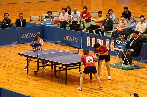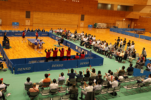5月25日(金)に湖西アメニティプラザでエクセディとのホームマッチが行われました。会場にはデンソー社員をはじめ地元の卓球愛好者が約600名来場し、両チームに温かい声援をおくりました。試合はデンソーが3対0で勝利しました。次の試合は、5月30日から高知県立県民体育館で行われる本大会で、残り5戦を戦います。