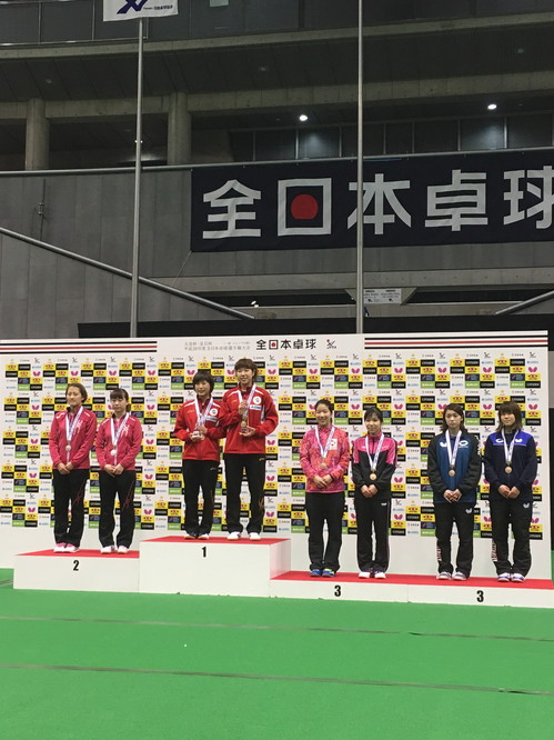 1月16日から22日まで東京体育館で全日本卓球選手権大会が行われました。この大会は、国内最高峰の大会で、カテゴリーを分けず、まさしく『日本一』を決める大会です。アスモからは静岡県の代表として6名の選手が出場しました。平田有貴・永尾尭子組で出場したダブルスは、1つ1つ階段を駆け上がる様に勝ち進み、決勝では日本リーグで活躍する中国電力のペアを3-1で下し、初優勝を遂げました。アスモとしても全日本選手権でのタイトルは初めてで、チームの歴史にも日本の卓球の歴史にも名前を残す事ができました。今年最初の大会を良い結果でスタートする事ができ、チームも勢いに乗って今年一年頑張っていきます。引き続き、温かいご声援を宜しくお願い致します。
