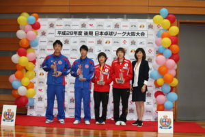 11月2~6日まで後期日本卓球リーグ大阪大会の結果、6戦全勝で2部優勝を果たし、1部に昇格が決定しました。沢山の温かいご声援をありがとうございました!来年度は、前期より1部でプレイします。地元でのホームマッチも開催しますので、皆さん会場へ足を運んで下さい。今後ともご声援を宜しくお願い致します。