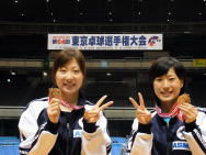 Result 第64回東京卓球選手権大会 2012.03.19 2012年3月14~18日 <シングルス> 肖萌 優勝 森永愛里 ベスト32 松浦亜希子 4回戦敗退 河村茉依 2回戦敗退 桑原美紀 2回戦敗退 平田有貴 1回戦敗退 <ダブルス> 森永・平田組 3位 松浦・桑原組 4回戦敗退 シングルス表彰式 ダブルス表彰式 右 森永愛里 ・ 左 平田有貴