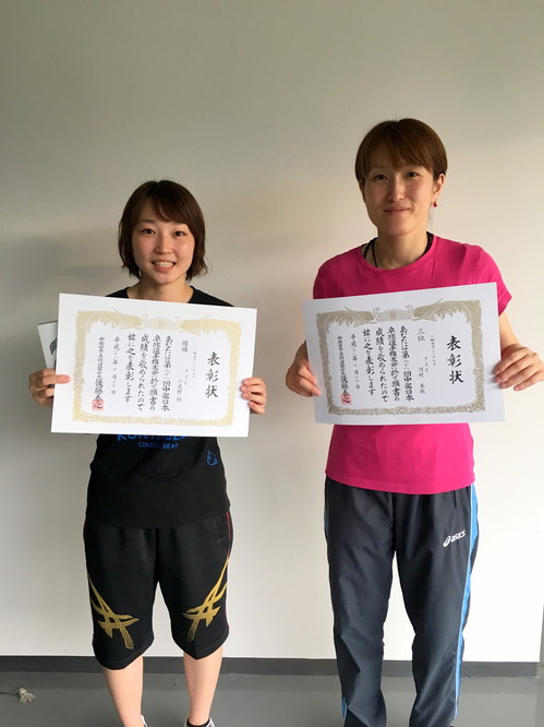 Result 第68回中部日本卓球選手権大会 2016.07.18 2016年7月16~17日 <ダブルス> 河村・小道野 組 ベスト8 <シングルス> 小道野結 優勝 河村茉依 第3位 平田有貴 ベスト32 準決勝戦の模様(青ユニフォーム小道野・赤ユニフォーム河村) 向かって左側 小道野(シングルス優勝) ・ 河村(シングルス第三位)