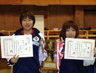Result 西日本卓球選手権大会 2010.04.13 2010年4月9~11日<シングルス>平田有貴 ベスト32桑原美紀 ベスト16松浦亜希子 ベスト16肖 萌 優勝 <ダブルス>桑原・平田組 3回戦敗退松浦・肖組 優勝 以上の結果となり、2種目で優勝する事ができました。 シングルス優勝 肖萌 ダブルス優勝 松浦亜希子(右)・肖萌(左)