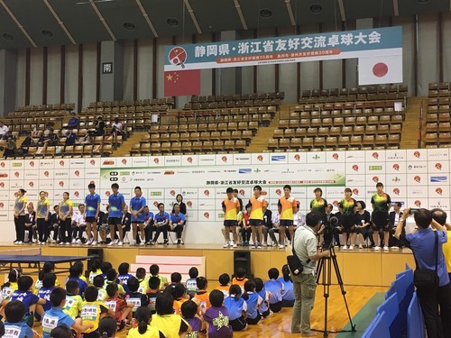 Result 静岡県・浙江省友好交流卓球大会 2017.08.20 8月11日(金)に静岡県・中国浙江省友好交流卓球大会が今年は静岡県藤枝市にあります静岡県武道館で開催されました。アスモからは招待選手代表戦の静岡県代表として平田有貴、小道野結、永尾尭子の3名が参加しました。浙江省代表チームは、中国リーグでも活躍する選手たちで、結果は浙江省代表が4対0で勝利しました。この様な素晴らしい交流大会に参加させて頂き、中国のトップ選手と対戦できた事は、とても良い経験になりました。関係者の皆様、本当にありがとうございました。